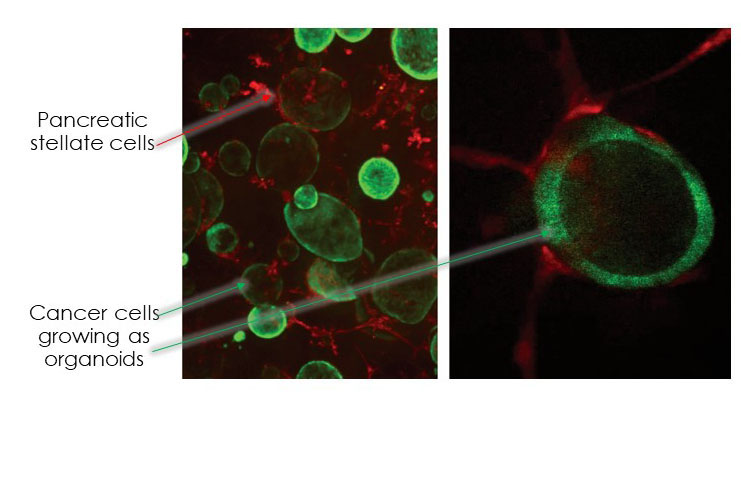 The Tuveson Laboratory uses murine and human models of pancreatic cancer to explore the fundamental biology of malignancy and thereby identify new diagnostic and treatment strategies. The lab’s approaches run the gamut from designing new model systems of disease to developing new therapeutic and diagnostic approaches for rapid evaluation in preclinical and clinical settings. The lab’s studies make use of organoid cultures—three-dimensional cultures of normal or cancerous epithelia—as ex vivo models to probe cancer biology. Current projects in the lab explore changes in redox metabolism associated with pancreatic cancer tumorigenesis, dissect signaling by the Ras oncogene, discover new biomarkers of early pancreas cancer, and identify mechanisms of cross-talk between pancreatic cancer cells and the tumor stroma. Novel treatment approaches suggested by these studies are then tested by performing therapeutic experiments in mouse models. To dissect molecular changes associated with pancreatic tumorigenesis, the Tuveson lab has generated a large collection of human patient-derived organoid models. By measuring the therapeutic sensitivities of patient-derived organoids, the lab is working to identify novel strategies to treat patients as well as markers of therapeutic response. The Tuveson Laboratory maintains strong links to clinical research, and the ultimate goal is confirmation of preclinical findings in early-phase trials. Collectively, the lab’s bench-to-bedside approach is codified as the “Cancer Therapeutics Initiative,” and this initiative will provide these same approaches to the entire CSHL cancer community.